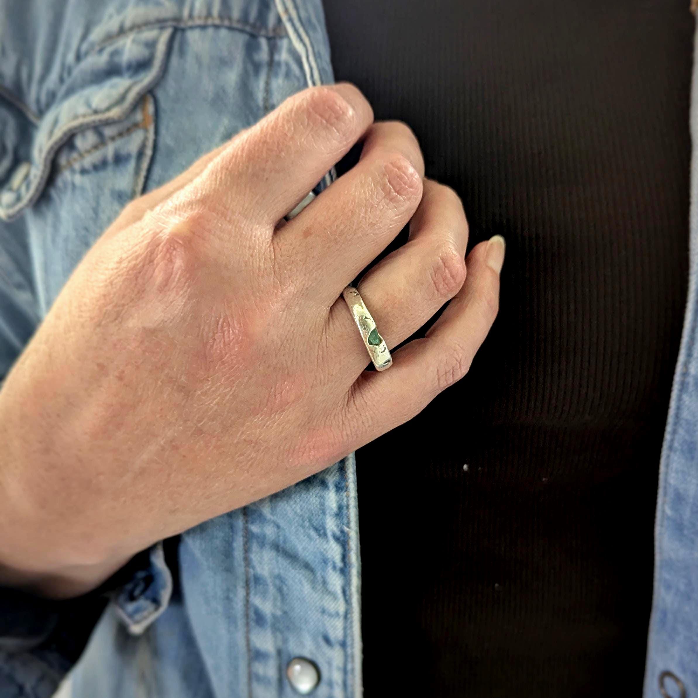 Solid silver band, perfect for a unique wedding band or engagement ring. A lovely gift for a special someone or a treat for yourself.