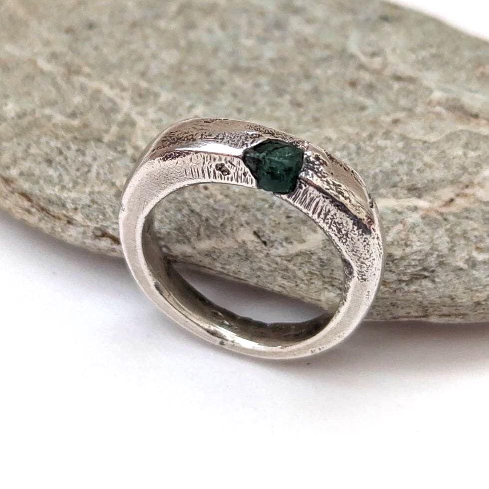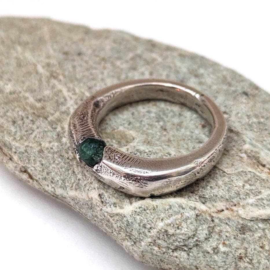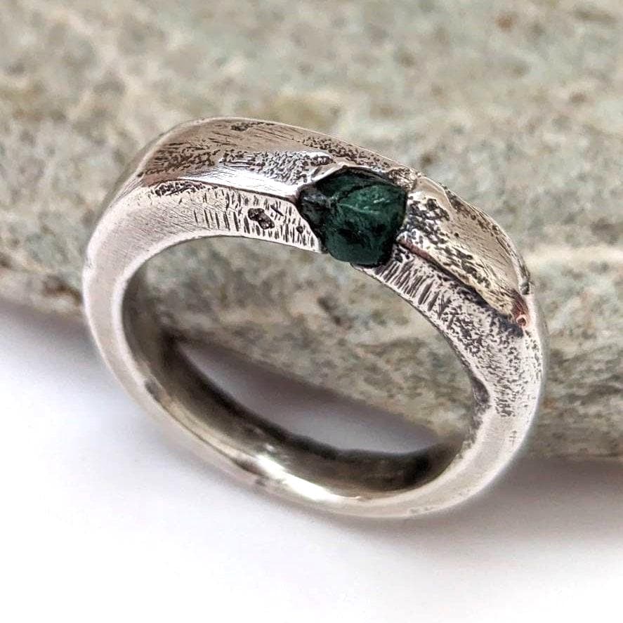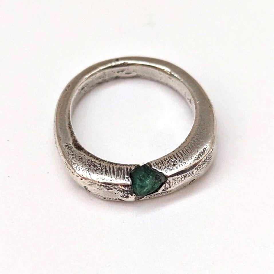 Raw emerald sandcast silver signet ring - made to order in the size you want.