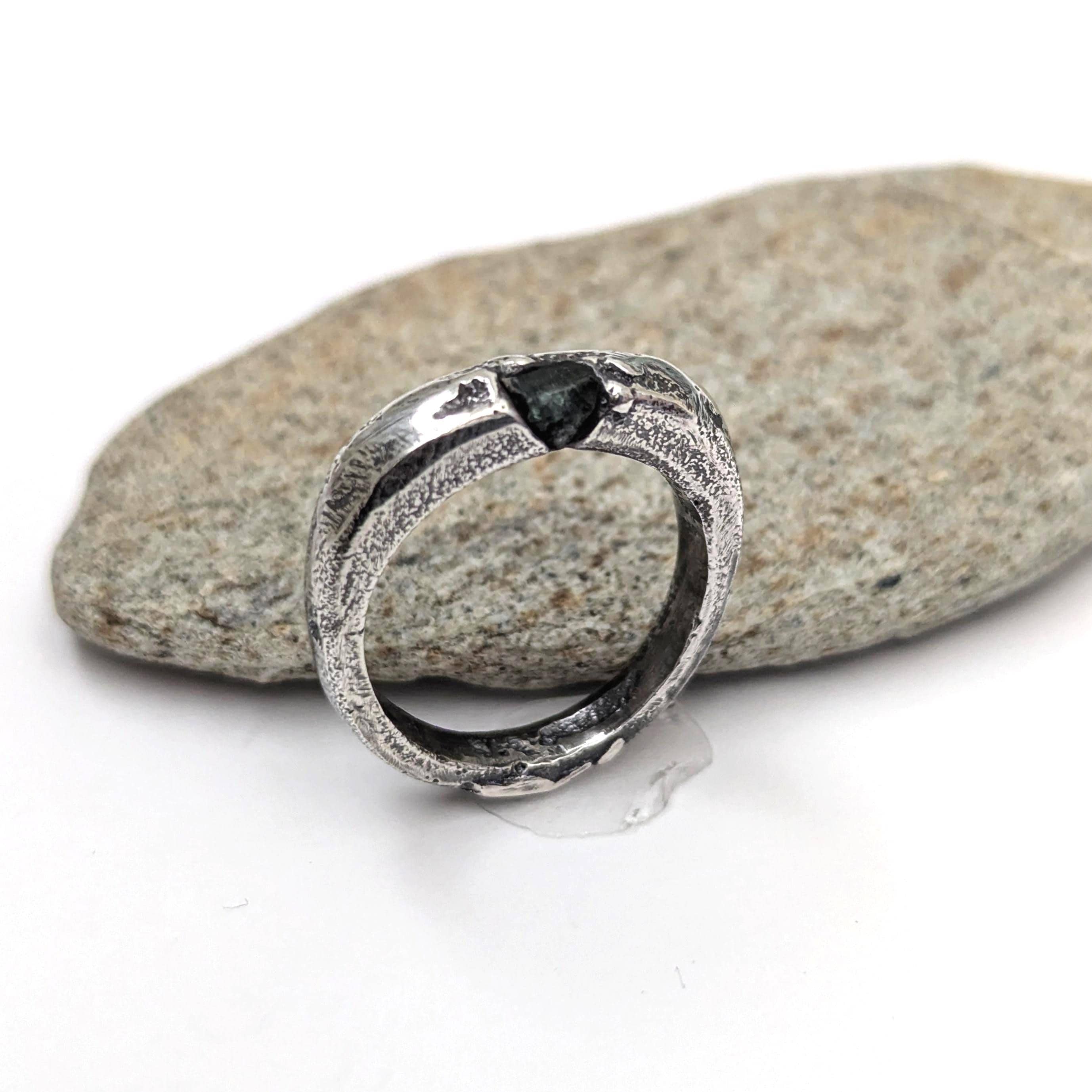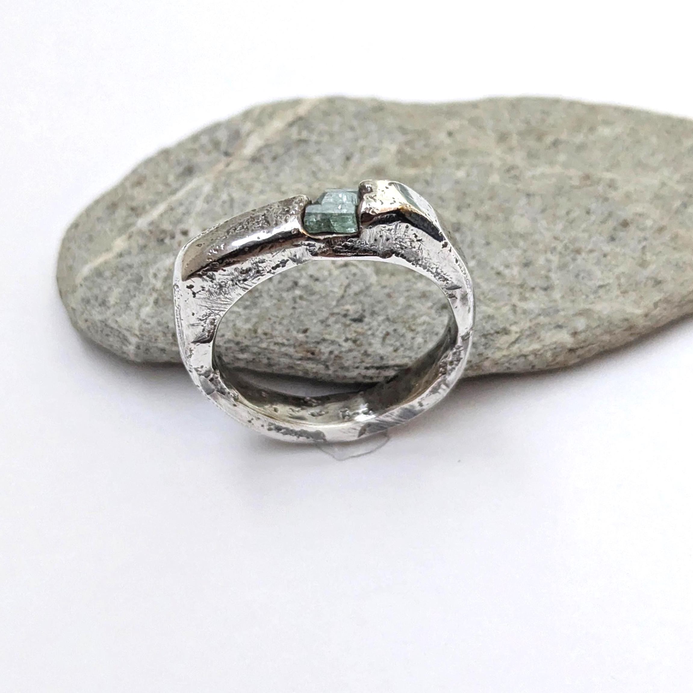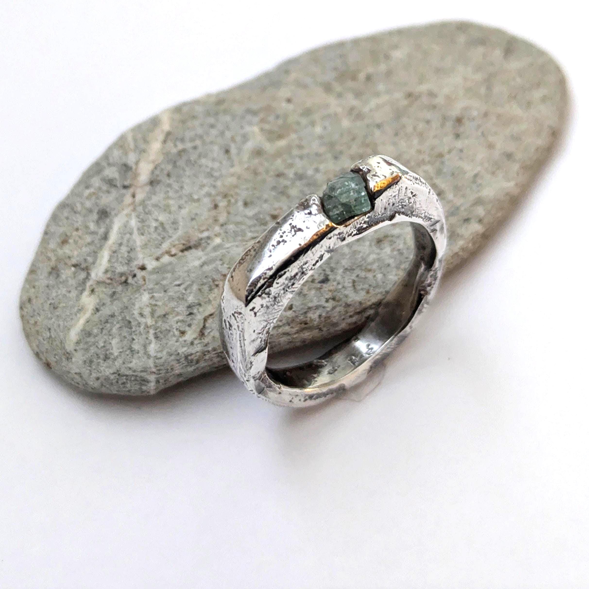 Each ring in this style is one of a kind and can not be duplicated to be exactly the same due to variations in the casting process as well as the variation of each raw stone. Please browse through the photos so as to appreciate the beautiful variations that occur organically with this style of ring.