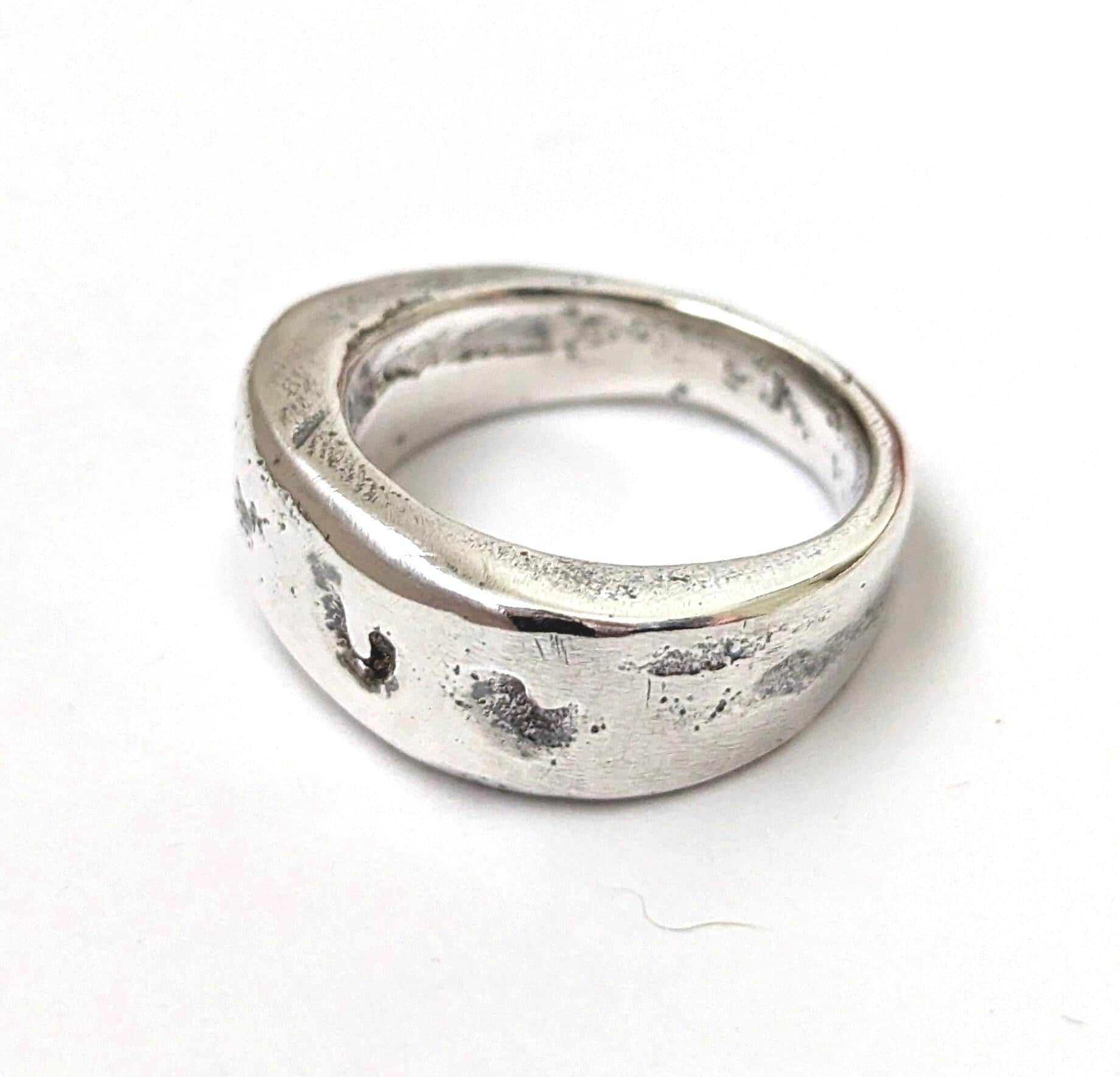 Solid silver sandcast chunky statement ring.