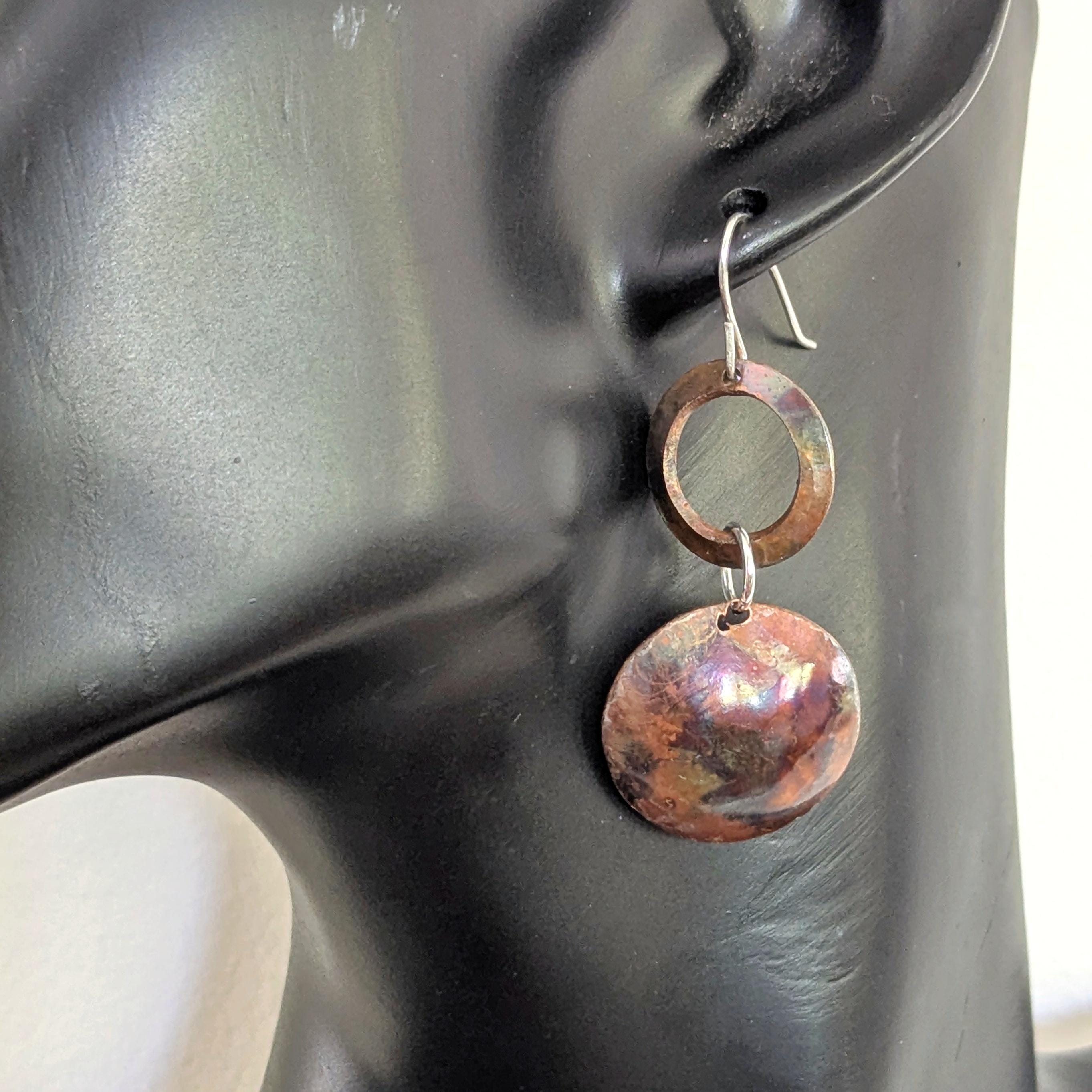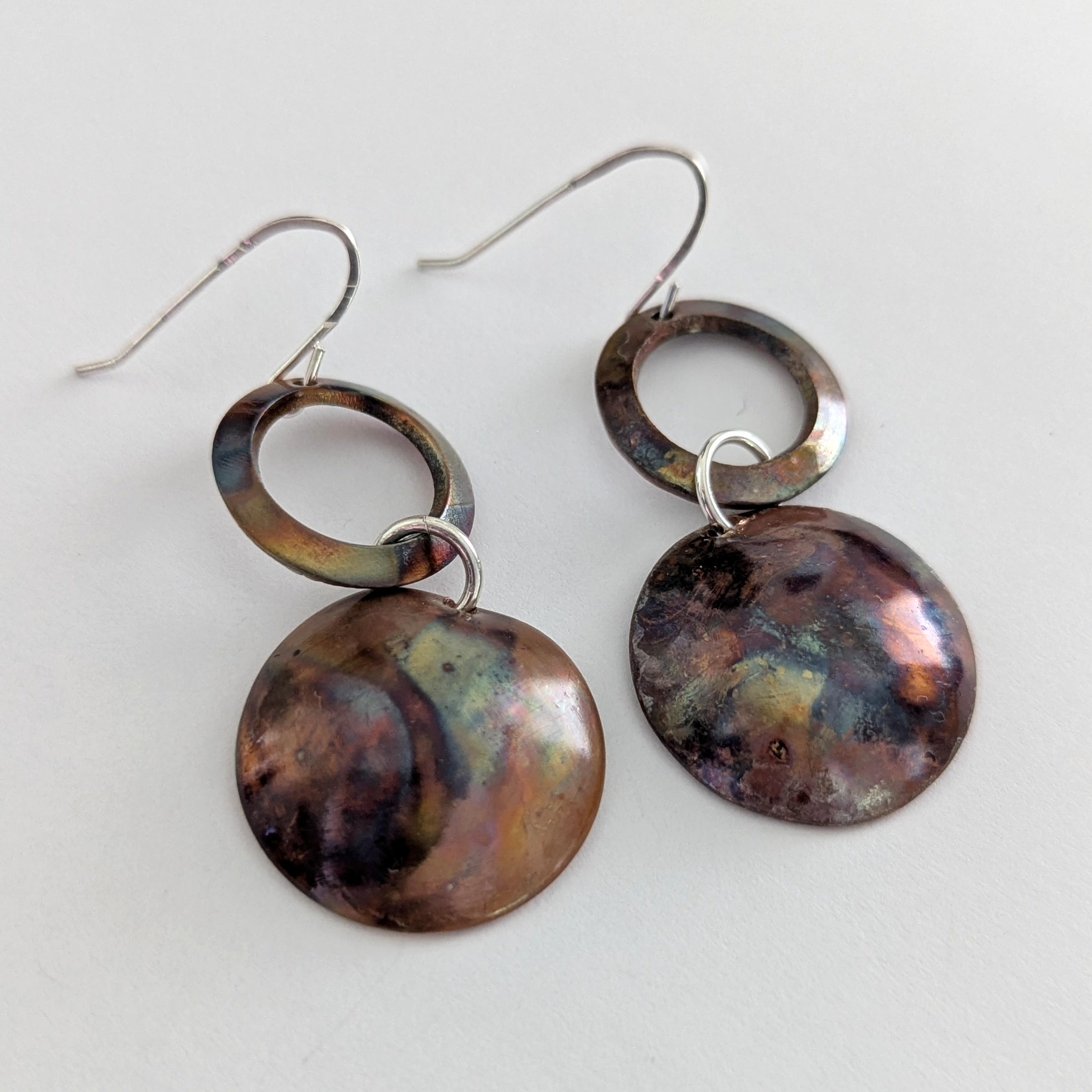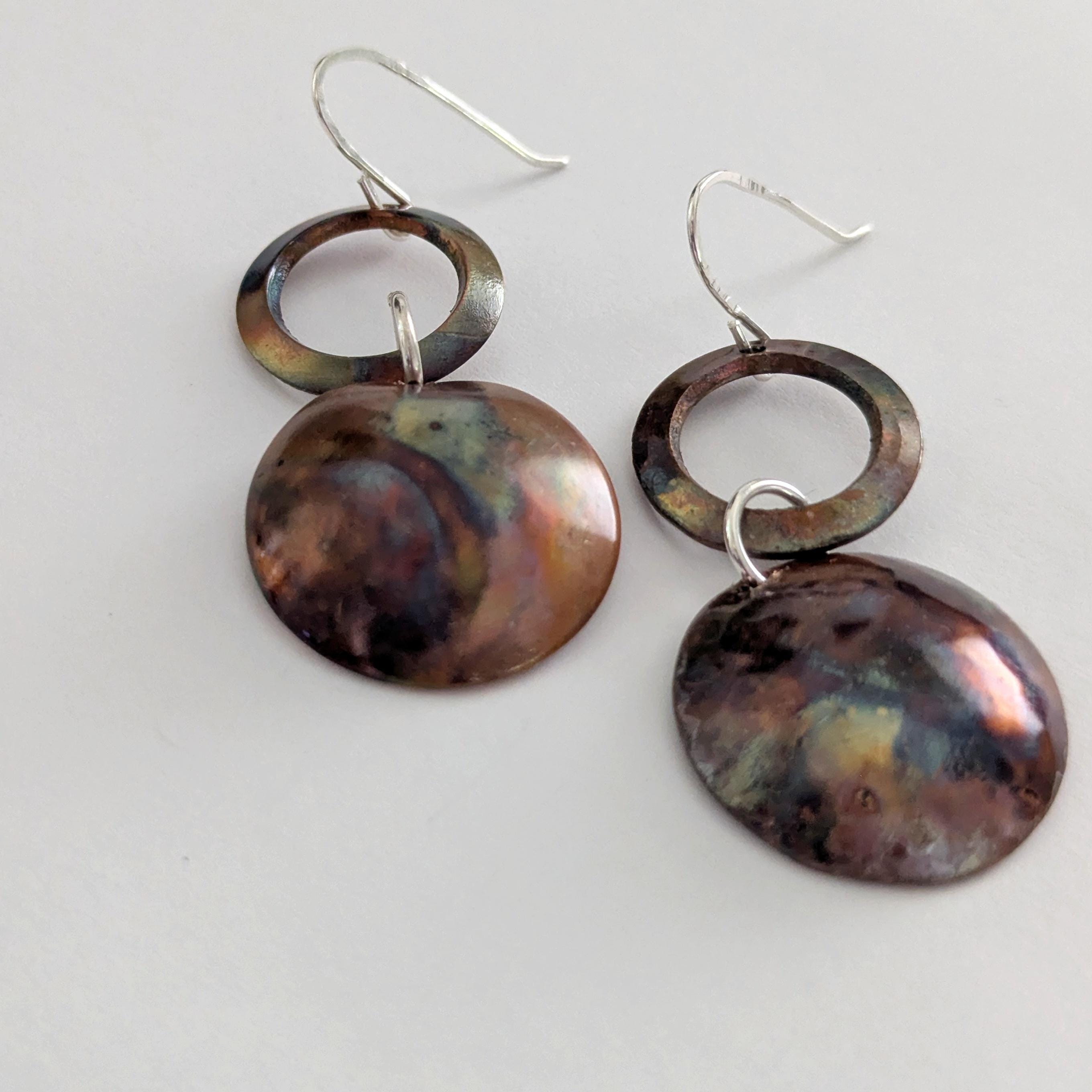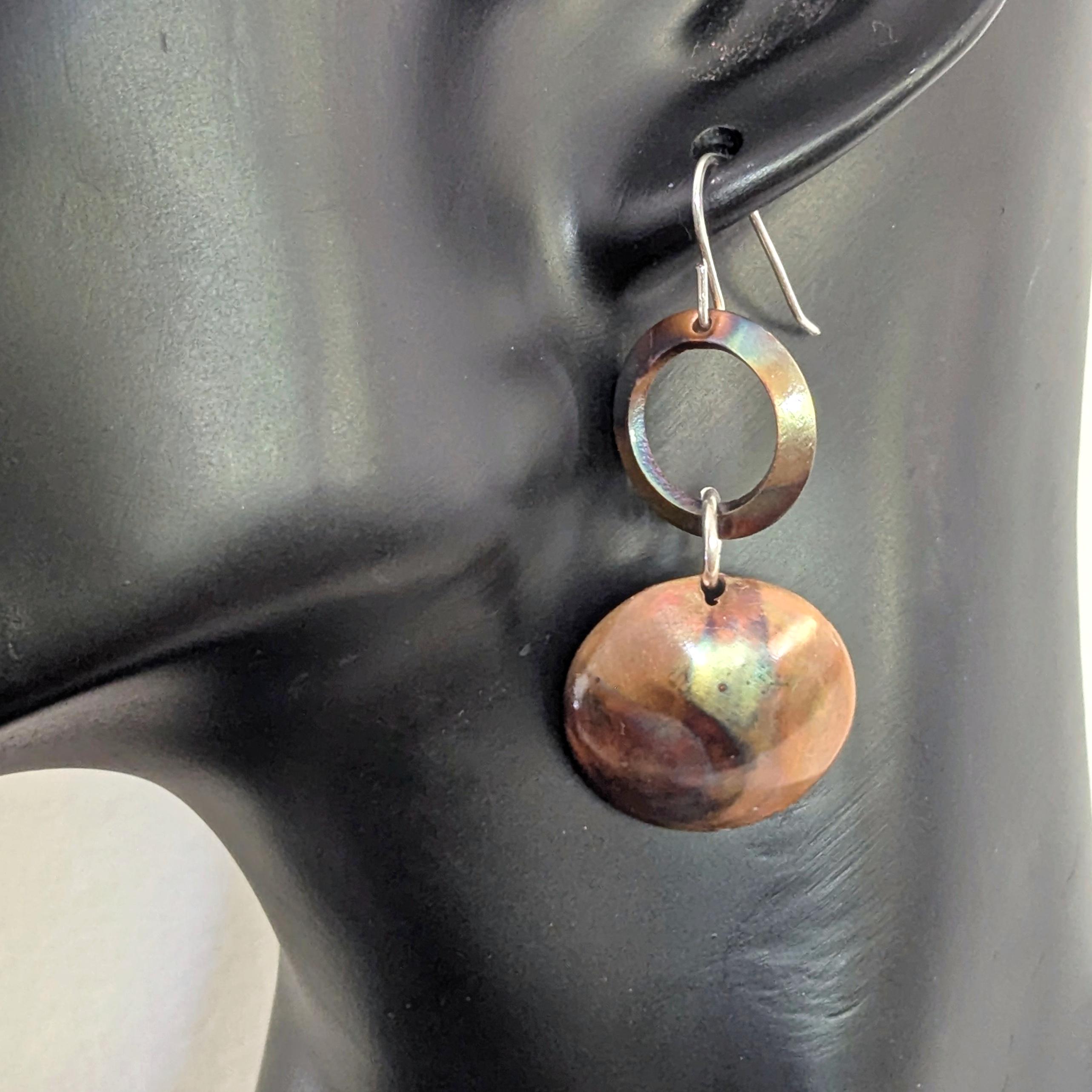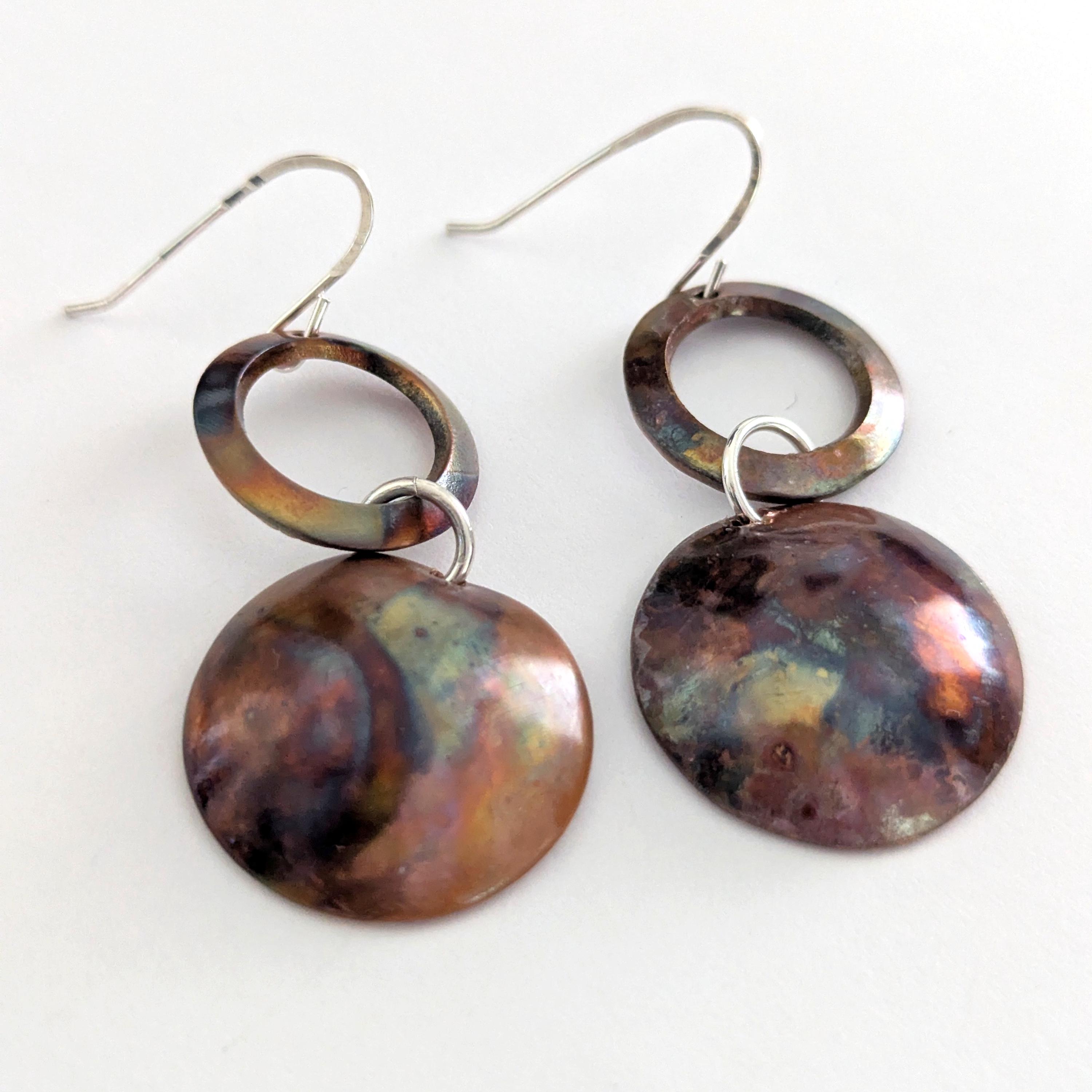 Flame painted copper earrings with sterling silver earwires